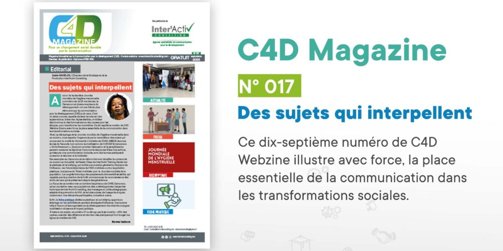 DE LA COMMUNICATION GLOBALE À LA COMMUNICATION POUR LE DÉVELOPPEMENT Même en milieu professionnel comme le nôtre, la fonction communication est souvent banalisée pour s’appliquer à tous les métiers. « Après tout, nous sommes tous des communicateurs ! », nous retorque-t-on habituellement. Que non ! La communication consiste à faire passer un message précis, à une audience minutieusement choisie (interne ou externe, prioritaire ou secondaire…), pour atteindre un objectif de visibilité, de notoriété, d’image ou d’action, et en optimisant autant que faire se peut, le rapport coût-résultat. Pour que ça marche, il faut une mise en cohérence d’au moins six éléments-clés à savoir : un émetteur, un récepteur, un message, un canal, des adjuvants (ou facilitateurs), des opposants (ou obstacles). NOS REALISATIONS Etude et conseil stratégique Conception et design graphique Création publicitaire et excution des campagnes Communication et marketing digitale Production print, audiovisuelle et événementielle Formation professionnelle continue NOS PRESTATIONS Communication pour le développement Communication institutionnelle Communication événementielle Communication digitale & marketing Formation professionnelle continue NOTRE ACTUALITE C4D Magazine n°017 [vc_row full_width="stretch_row_content" text_parallax_offset="" css=".vc_custom_1669971698475{background-position: center !important;background-repeat: no-repeat !important;background-size: cover !important;}" el_class="bloc-titre"][vc_column width="1/12" css=".vc_custom_1663499576141{margin-top: 30px !important;}"][/vc_column][vc_column… Lire la suite Teambuilding [vc_row][vc_column css=".vc_custom_1680105051532{padding-left: 50px !important;}"][wd_headings headings_layout="t-under-s" headings_title="Nucleus Sport & Inter’Activ Consulting, un partenariat au service du… Lire la suite Capitalisation [vc_row][vc_column css=".vc_custom_1749555638312{padding-left: 50px !important;}"][wd_headings headings_title="Le PDVIR fait son film documentaire" headings_title_tag="h4" headings_subtitle="" heading_style="heading_style_2" custom_style="yes" headings_alignment="left"… Lire la suite Désinformation par le digital [vc_row][vc_column css=".vc_custom_1749555638312{padding-left: 50px !important;}"][wd_headings headings_title="Le Cameroun invité à adopter de bonnes pratiques face à l’infox"… Lire la suite BESOIN D’UN SERVICE ? CONTACTEZ-NOUS
