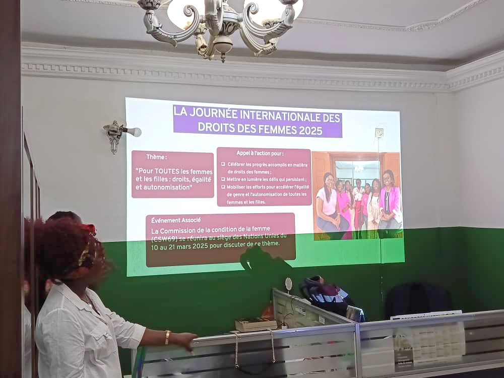 Le thème de l’édition 2025 de la Journée internationale de la femme : « Pour toutes les femmes et filles : droits, égalité et autonomisation », a inspiré une réflexion au personnel féminin de Inter’Activ Consulting, laquelle a débouchée sur une présentation faite par Adeline GUIAKAM, Assistante administrative de l’agence. Elle a partagé avec l’ensemble du personnel conduit par le top management, le quotidien des mères travailleuses, « les mères  jongleuses », pour prêter à son expression. Ces mères qui jonglent entre vie professionnelle et responsabilités familiales. Elle a relevé dans un premier temps, la multitude de défis auxquels « les mères jongleuses » font face. Les dédis organisationnels matérialisés par la difficulté de la gestion du temps, l’accessibilité limitée dans la flexibilité des horaires de travail, la gestion des imprévus. Les défis émotionnels matérialisés par la culpabilité, le stress, l’épuisement. Les défis sociétaux matérialisés par l’insuffisance de la disponibilité des mères, l’écart salarial accentué avec la maternité, l’insuffisance des crèches et leur coût élevé pour la garde de leurs nourrissons.