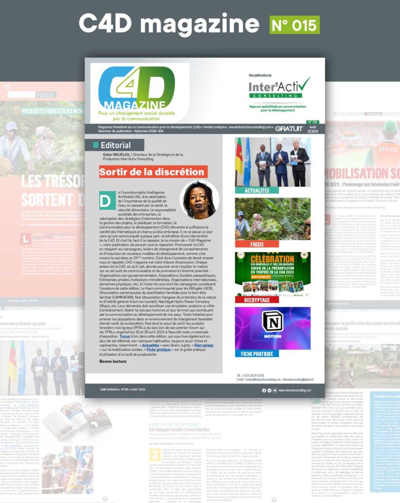 Le magazine édité par Inter’Activ Consulting, agence de communication spécialisée en Communication pour le Développement, C4D Magazine, vient de livrer sa 15ème édition disponible gratuitement .